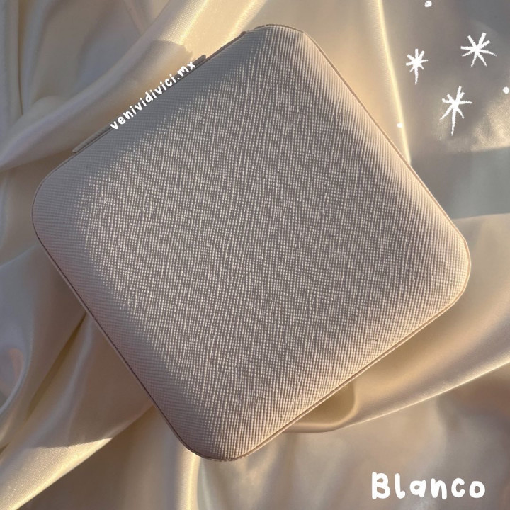 Joyero de cuero sintético, medidas: 10 cm x 10 cm